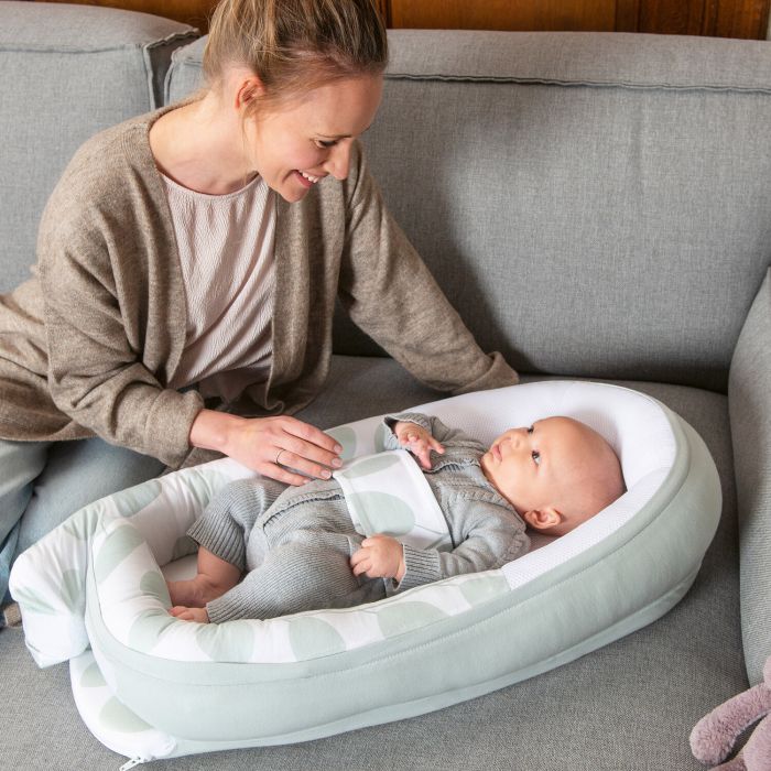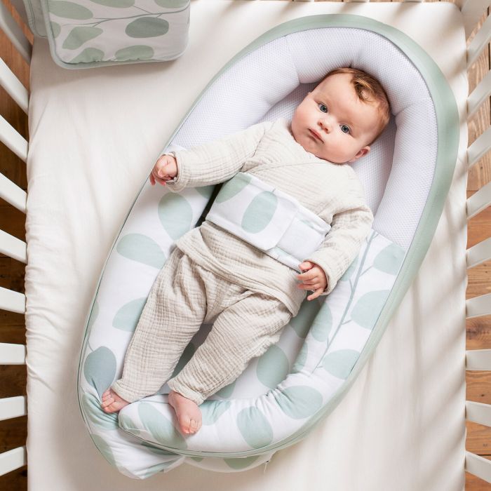 Le Doomoo Cocoon Leaves Aqua Green est un véritable petit nid douillet, offrant un espace confortable et relaxant à votre bébé.