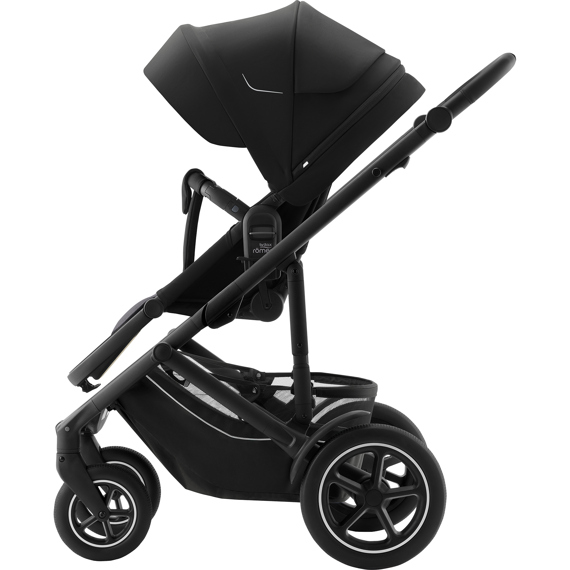 La poussette Britax Romer Smile 5Z Space Black, est la poussette tout-terrain polyvalente de Römer qui offre un confort ultime, et laquelle s’utilise dès la naissance en combinaison avec la nacelle Smile 5Z (vendu séparément) jusqu’à l’âge de 4ans (22kg). Des adaptateurs permettant de fixer la nouvelle coque BABY-SAFE PRO* sur votre SMILE 5Z sont déjà inclus. (*Baby Safe Pro vendu en option)