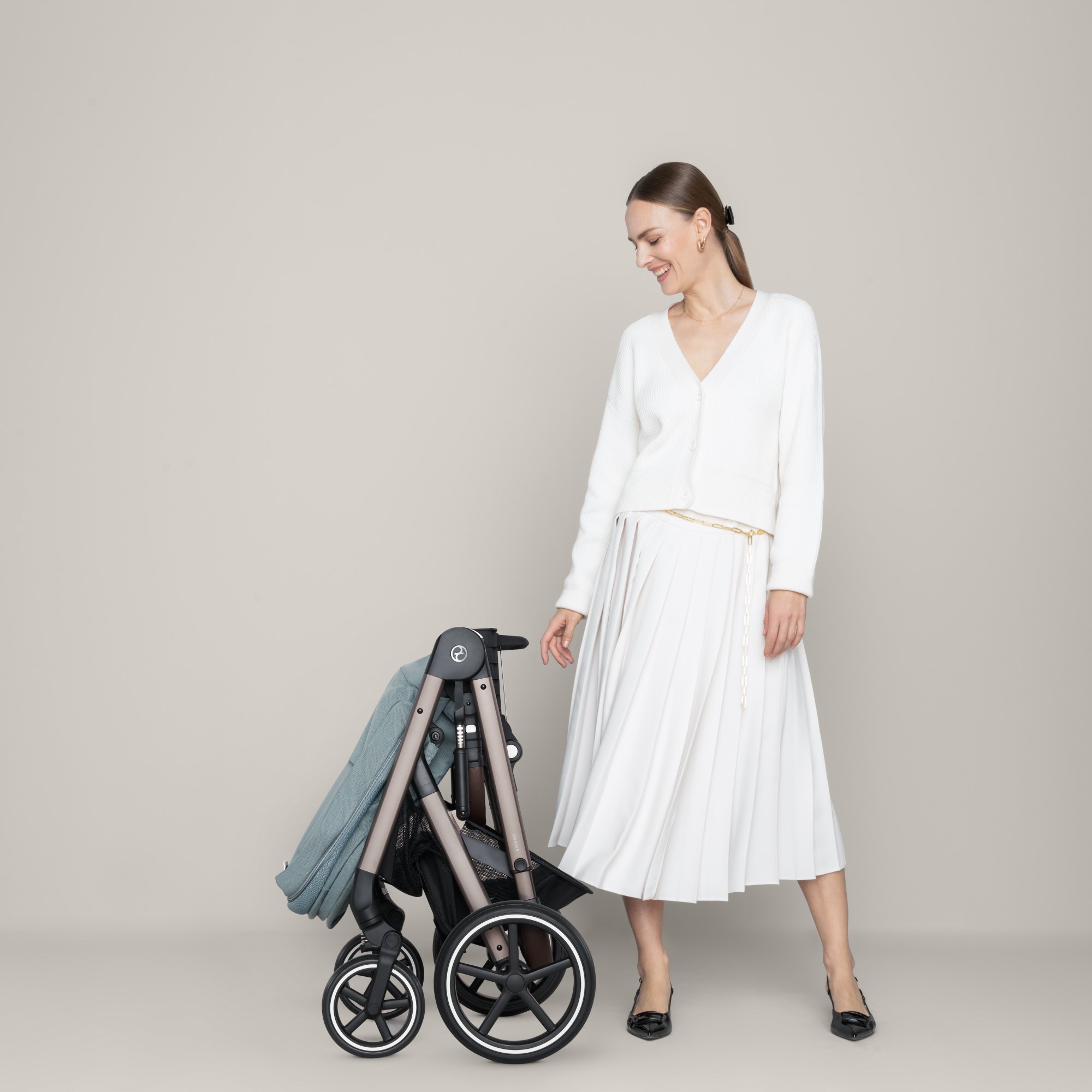 La poussette Cybex Balios S Lux TPE Stormy Blue est équipée d’un siège réversible, qui grâce à sa manipulation simple, s’ajuste d’une seule main sur différentes positions jusqu’à une position allongée et confortable, transformant ainsi la poussette en un lit confortable pour votre enfant. Que ce soit face au monde ou face parents, le siège de la poussette peut facilement être réglé à la position souhaitée en quelques secondes. Le repose-pied est également réglable sur différentes positions. Le guidon de la poussette Cybex Balios S Lux est réglable en hauteur, et le siège poussette se trouve à hauteur d’une table moyenne. Elle est équipée d’un grand panier avec une capacité de charge de 10 kg. La capote XXL de la poussette est doté d’une fenêtre en mesh pour l’aération et une circulation d’air saine lors des journées chaudes. Grâce au nouveau harnais ajustable à une main, vous pouvez installez votre enfant dans le siège de la poussette en un clin d’œil. Le châssis Cybex Balios S Lux (travel système 4-en-1) permet l’utilisation avec le siège poussette avec la nacelle S (vendu en option), un siège auto (vendu en option) ou encore avec un cocoon(vendu en option). La nacelle est montée assez haut sur le châssis, donc votre dos n’est pas trop sollicité lorsque vous soulevez votre enfant de la nacelle.