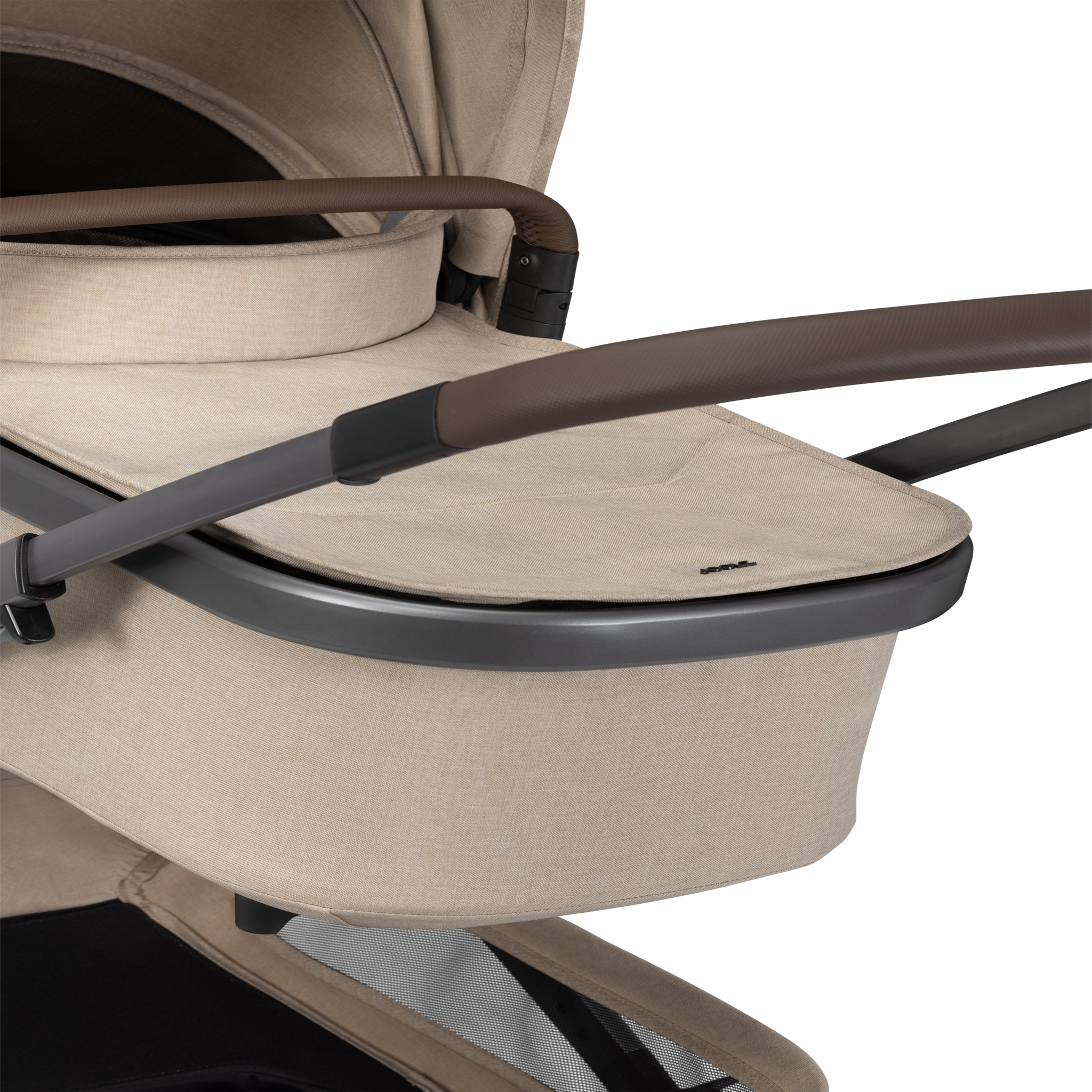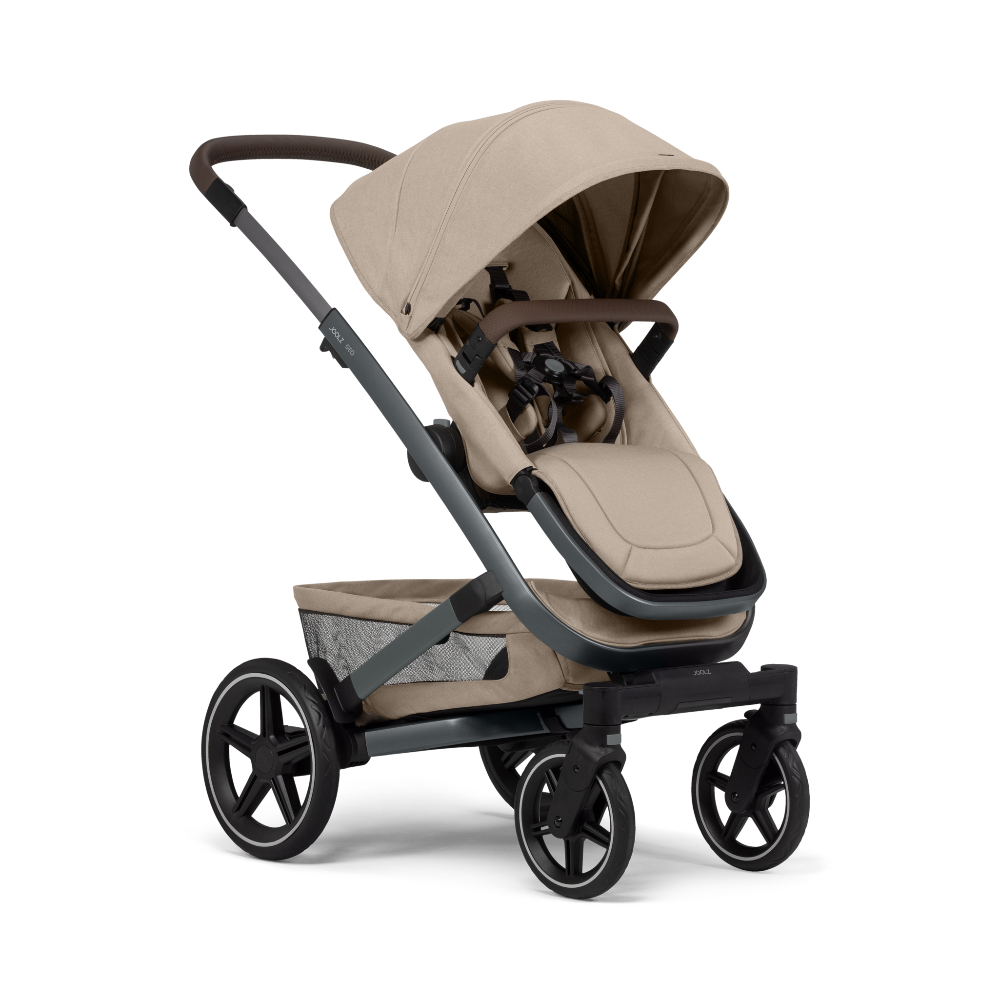 La poussette Joolz Geo3 complete set Sandy Taupe s’utilise dès la naissance jusqu’à 6mois en combination avec la nacelle puis jusqu’à l’âge de 4 ans (22kg) avec le siège poussette.