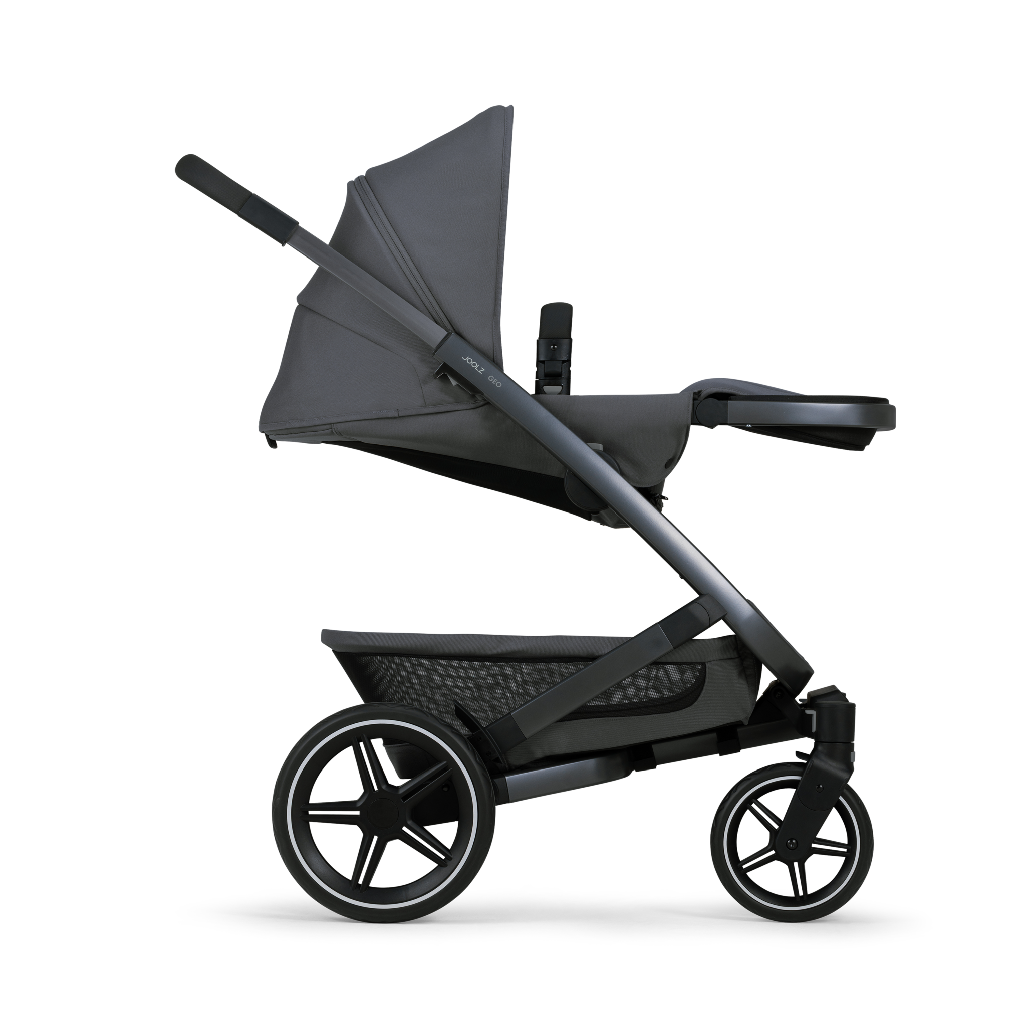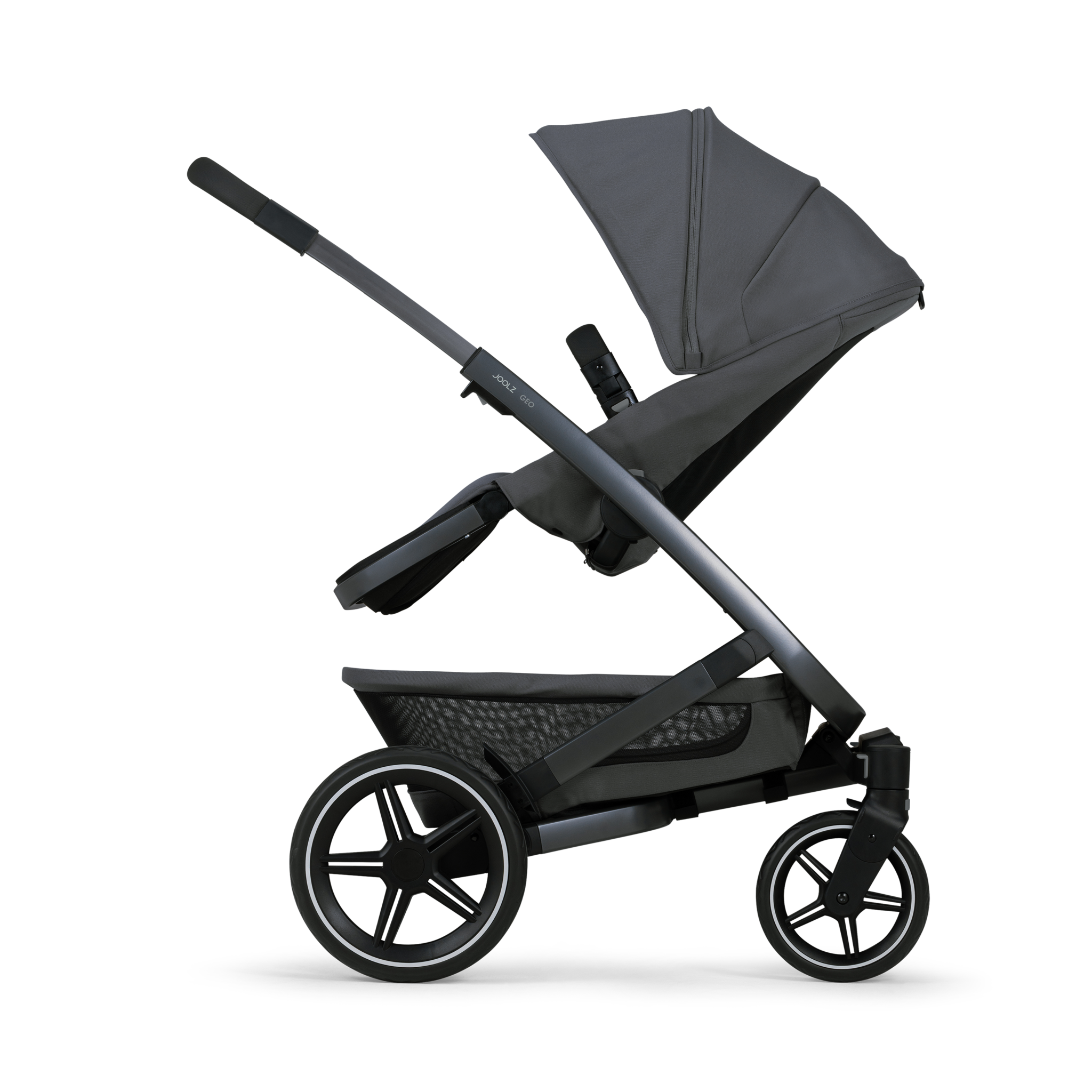 La poussette Joolz Geo3 complete set Stone Grey s’utilise dès la naissance jusqu’à 6mois en combination avec la nacelle puis jusqu’à l’âge de 4 ans (22kg) avec le siège poussette.