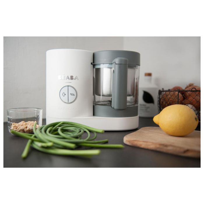 Le Robot cuiseur Beaba Babycook Neo gris-blanc permet de cuisiner à la vapeur douce les aliments en vue de respecter la qualité des nutriments.