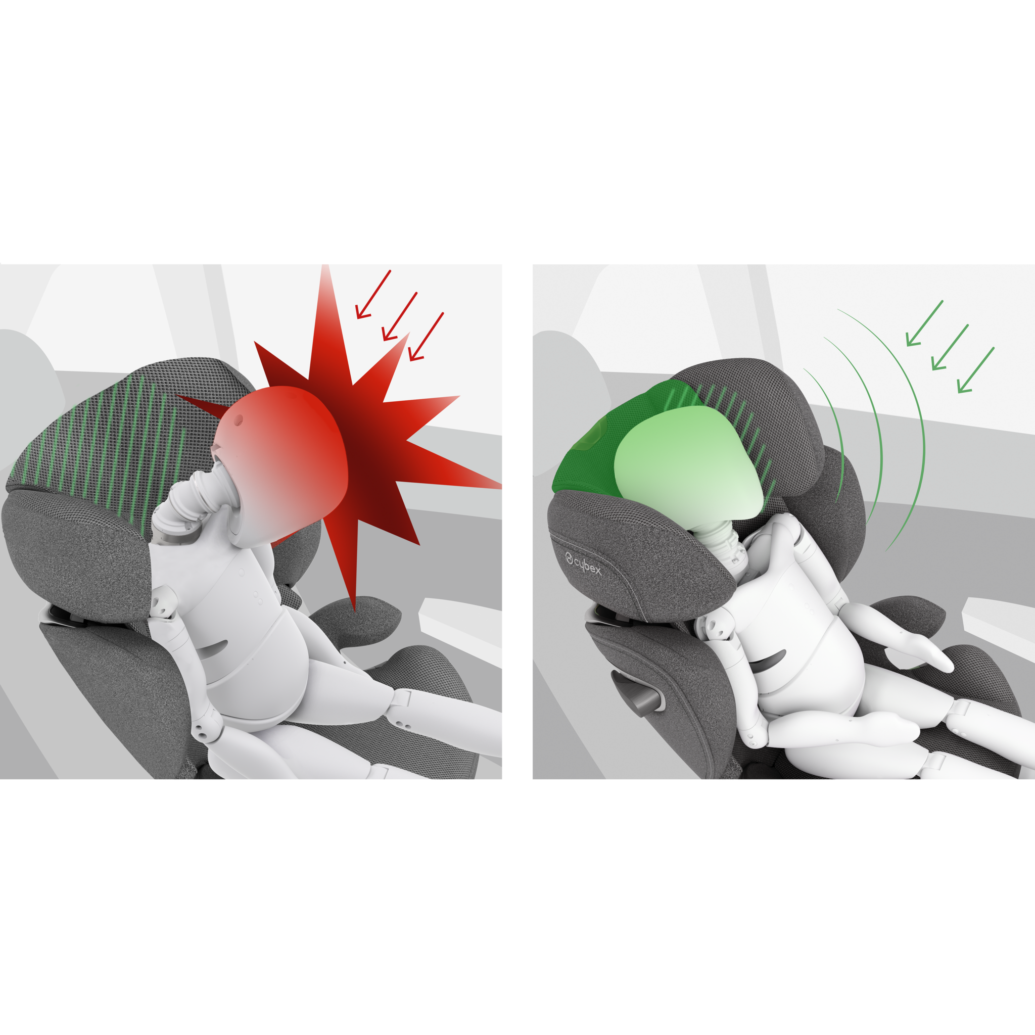 Le siège auto Cybex Solution T i-Fix Mirage Grey offre une protection accrue en cas de collision latéral, suite au système de protection linéaire amélioré. Ce système est activé automatiquement avant l’installation et améliore la sécurité en cas d’impact latéral. permet de s’adapter au mieux à toutes les voitures afin d’absorber les forces générées par un choque latéral. En combinaison avec l’appui-tête inclinable du siège auto, qui évite que la tête de l’enfant bascule vers l’avant lors du sommeil, le siège auto Cybex Solution T i-Fix offre le plus haut niveau de sécurité et de confort pour l’enfant.  Suite à ce système de protection de la tête, la zone sensible du cou et de la tête reste protégée de façon optimale. Le siège auto Cybex Solution T i-Fix remplie la nouvelle norme R129/03. Le siège auto Cybex Solution T i-Fix grandit avec l’enfant, en s’ajustant simultanément en hauteur et en largeur. Il s’agit ici d’un mécanisme maniable d’une seul main, permettant un simple ajustement offrant 12 positions différentes. Le siège auto Cybex Solution T i-Fix est doté d’un système de ventilation amélioré à 360°, permettant de garder une température agréable pendant toute l’année Le siège auto Cybex Solution T i-Fix s’adapte de façon optimale à la banquette du véhicule suite à son dossier inclinable. Le siège auto est équipée d’une assise très doux et confortable. Le système ISOFIX vous permet d’installer facilement et rapidement le siège auto Cybex  Solution T i-Fix dans votre voiture. Suite aux indicateurs visuels, une installation correcte est garantie. Il fournit également une connexion sécurisée au véhicule pour plus de stabilité en cas d’accident.