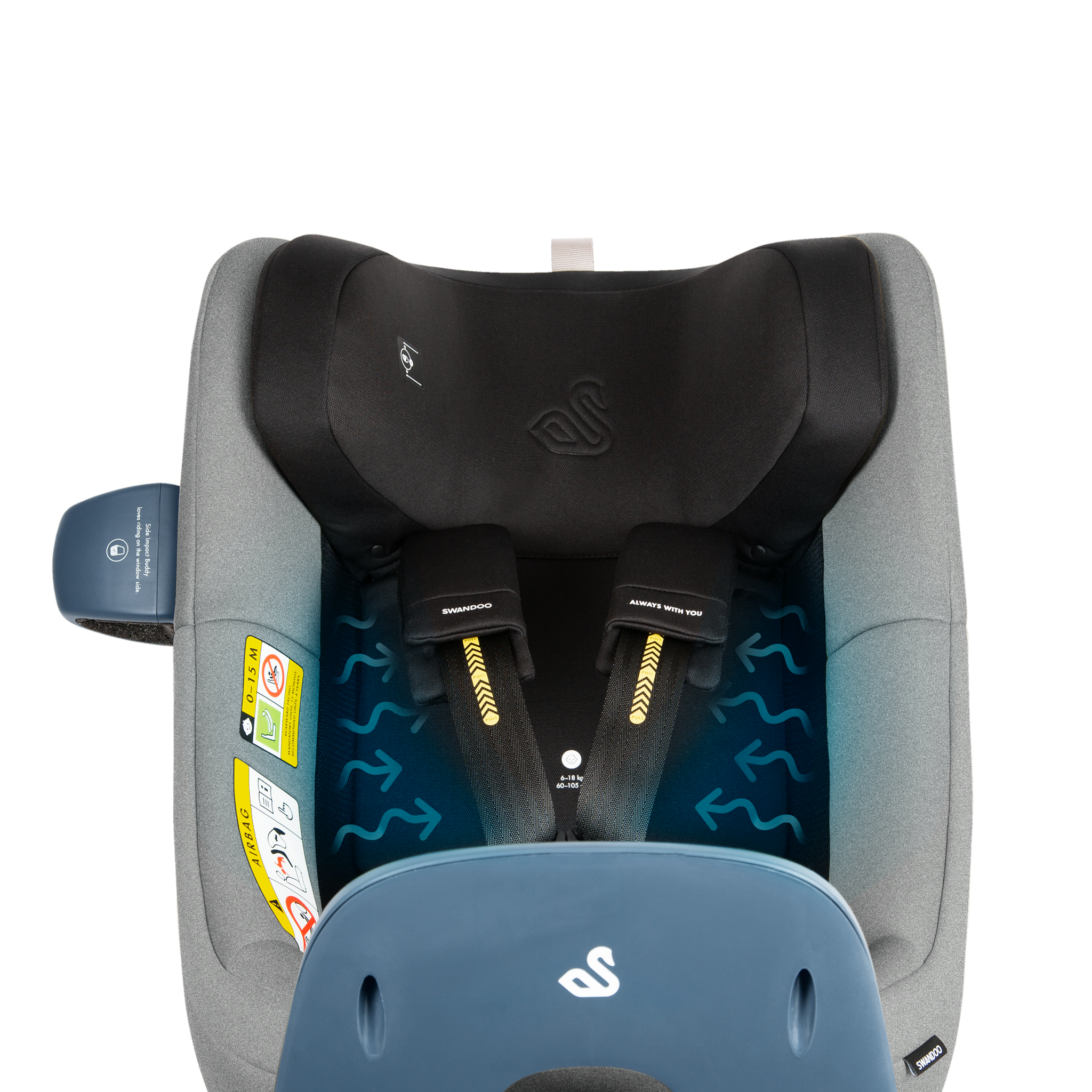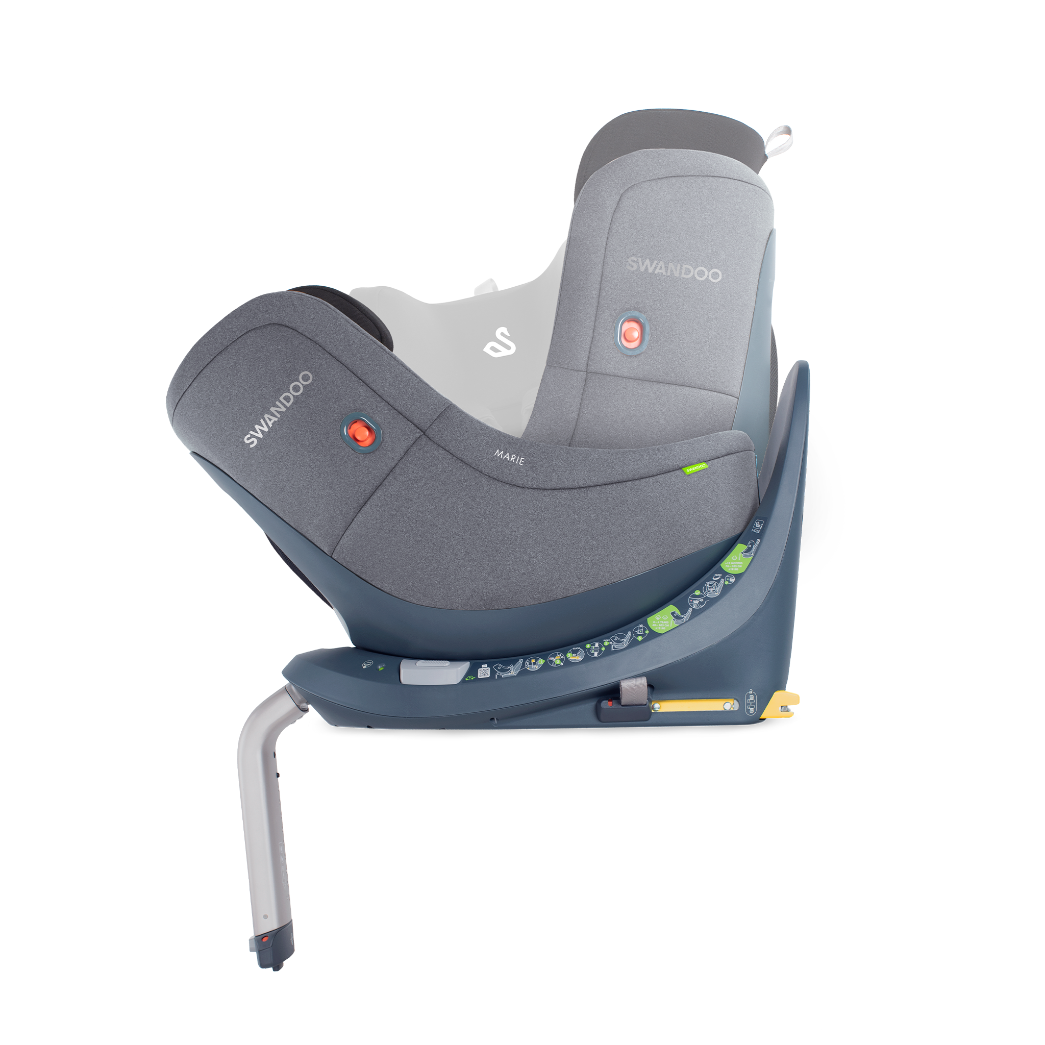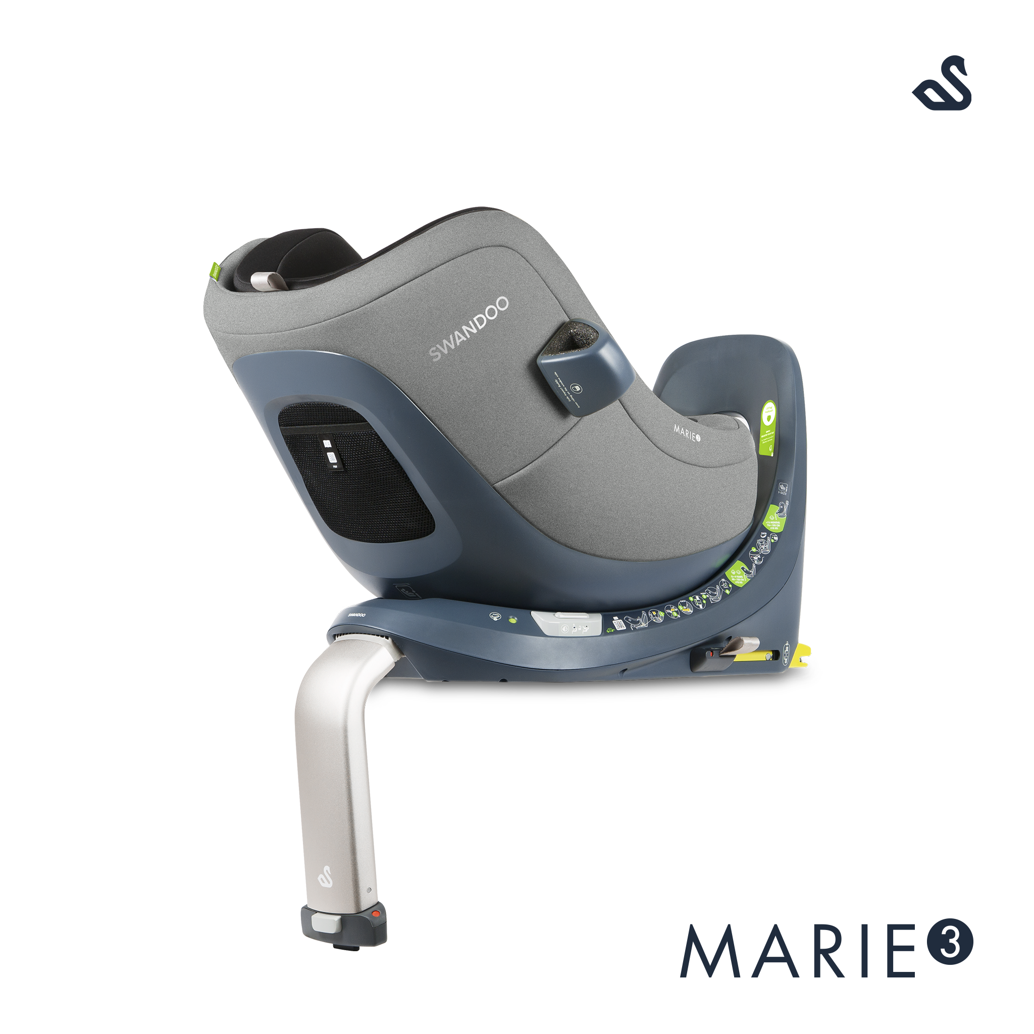 Le siège auto Swandoo Marie 3 i-Size Alfalfa est fourni avec une base Isofix indissociable pour une installation stable et sûre dans la voiture. Le pied stabilisateur absorbe les forces en cas de choque frontal. En mode dos et face à la route, le bébé est tenu par le harnais de sécurité 5 points du siège auto. Le siège auto Swandoo Marie 3 i-Size dispose d’un système « harnais + » » à savoir le harnais 5 points est doté d’une indication visuelle permettant de savoir si le harnais est correctement serré. La têtière du siège auto siège auto Swandoo Marie 3 i-Size est ajustable sur 11 niveaux, pour garantir un ajustement parfait du siège auto à l’enfant. Un guide visuel « hauteur des yeux » sur la têtière du siège permet d’ajuster au mieux le siège à la taille du bébé. Le siège auto Swandoo Marie 3 i-Size est doté du système « Child Direction Assistance » qui évite d’installer le siège auto Swandoo Marie 3 i-Size face à la route avant l’âge d’environ 16 mois (76cm). Le siège auto Swandoo Marie 3 i-Size est doté du système intelligent de rotation de 360 °, permettant d’installer facilement l’enfant, en tournant le siège vers la portière de la voiture. En plus, le système permet de passer rapidement d’un siège auto orienté dos à la route vers un siège face à la route une fois la taille de 76cm atteint. La fonction d’inclinaison et de rotation intelligente permet de tourner le siège auto de n’importe quelle des 4 positions d’inclinaison et d’offrir ainsi un voyage confortable et en toute sécurité à votre enfant. Le siège auto Swandoo Marie 3 i-Size offre une protection accrue en cas de collision latéral, suite au système « side impact buddy » permettant de réduire jusqu’à 40% la force de l’impact. Le siège auto offre un système d’accroche magnétique permettant de maintenir le harnais ouvert pour une installation facile du bébé. Le siège auto est déhoussable et la housse est lavable.