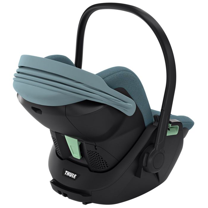 Le siège auto Thule Maple Mid Blue est dotée du Thule Impact Protection System qui assure à votre enfant une protection et une sécurité idéales, le protégeant sous tous les angles afin de rendre chaque trajet en voiture aussi sûr que possible. Le siège auto Thule Maple vous permet de vous concentrer sur la route en gardant l’esprit tranquille, car votre nouveau-né bénéficie d’un niveau de sécurité inégalé. Le siège auto Thule Maple est fournit avec un coussin nouveau-nés  qui s’utilise jusqu’à 60cm. Le canopy solaire déperlant avec protection UV (UPF50+) protège votre bébé du soleil et de la pluie, ce qui rend le siège idéal pour toutes les conditions météorologiques. Le siège auto Thule Maple peut être allongé en position horizontale à l’extérieur de la voiture à savoir par exemple sur la poussette, et en position légèrement verticale pour la voiture. En combinaison avec des adaptateurs (vendu séparément), la coque s’adapte à toutes les poussettes Thule par exemple, permettant de devenir un vrai Travel System. La coque peut être installé facilement avec la ceinture de sécurité dans la voiture, ou en acquérant une Base Isofix Alfi (vendu séparément) permettant d’avoir une sécurité accrue et une installation plus facile. La Base isofix Thule Alfi est doté de la technologie EasyDock, permettant au siège auto Thule Maple d’être facilement installé et pivoté sur la base isofix Thule Alfi . L’affichage numérique fournit un signal visuel instantané confirmant l’installation correcte et sécurisée du siège. La technologie EasyDock permet de monter facilement le siège auto sur la base, ce qui est particulièrement important pour les sièges auto bébés afin de ne pas perturber leur sommeil. Son interface intuitive en forme de cône rend l’installation du siège très facile. Placez le siège sous n’importe quel angle depuis la portière de la voiture, tournez pour verrouiller et vous êtes prêt à partir.