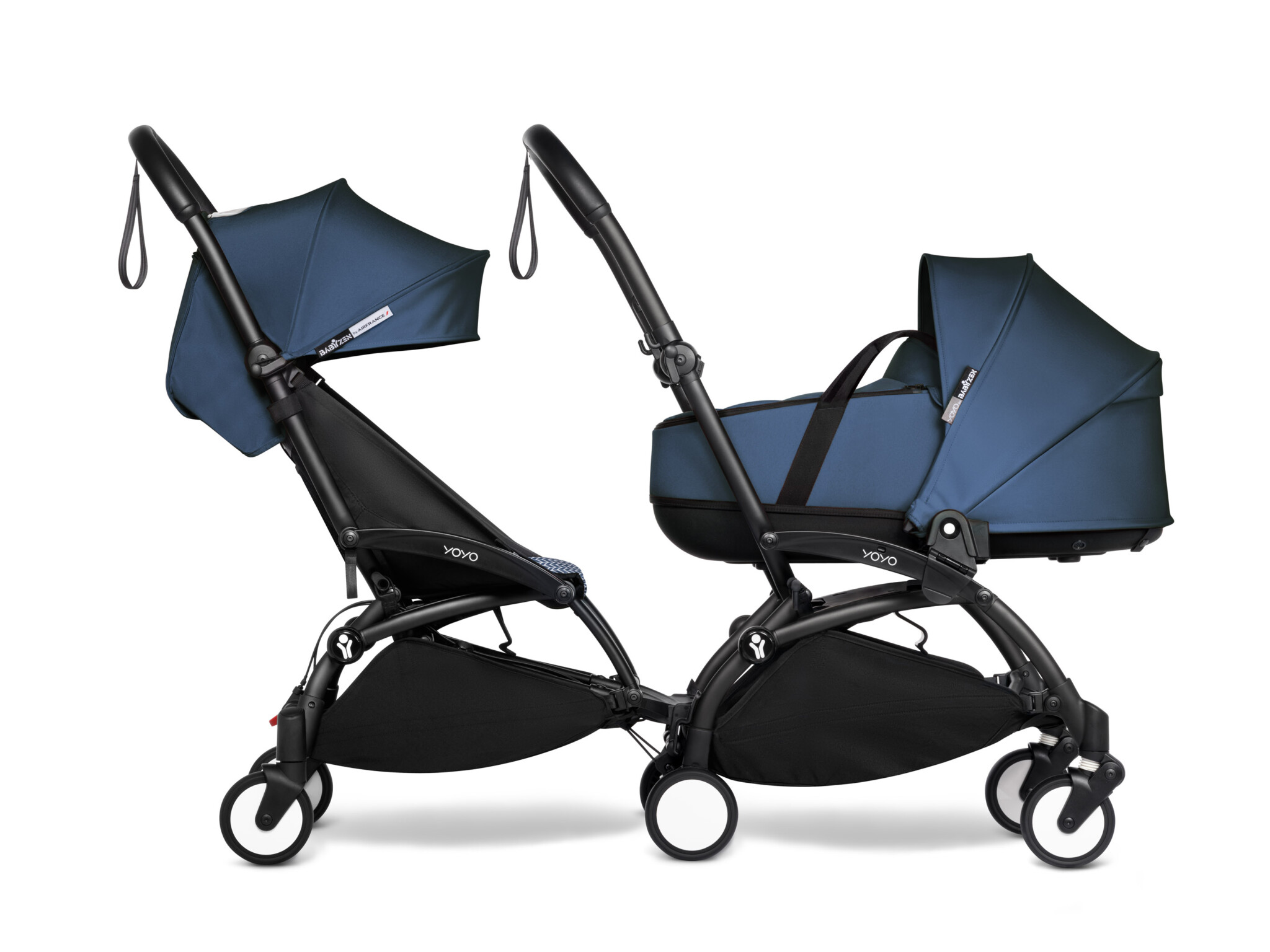 La YOYO connect est ultra compacte (52 x 44 x 24 cm) et en combination avec la poussette YOYO² ou YOYO³, il s’agit de la solution la plus compacte au monde pour deux enfants. C’est la seule poussette double qui voyage en cabine avion. La YOYO connect s’installe facilement à l’arrière de YOYO2 ouYOYO³, grâce à son système de connexion instantanée breveté et la transforme ainsi en poussette double. La YOYO connect est équipé du système de pliage breveté YOYO², et permet ainsi un pliage rapide et facile. Une fois pliée, la YOYO connect s’accroche facilement à l’arrière de YOYO2 ou YOYO³ à l’aide de deux crochets et d’une sangle. La YOYO connect est compatible avec la nacelle, l’ombrelle, le porte-gobelet, la chancelière, le sac de voyage, la protection pluie et la moustiquaire de laYOYO³. Le pack nouveau-né 0+ n’est pas compatible avec la YOYO connect, ni avec la YOYO² ou YOYO³ en mode double.