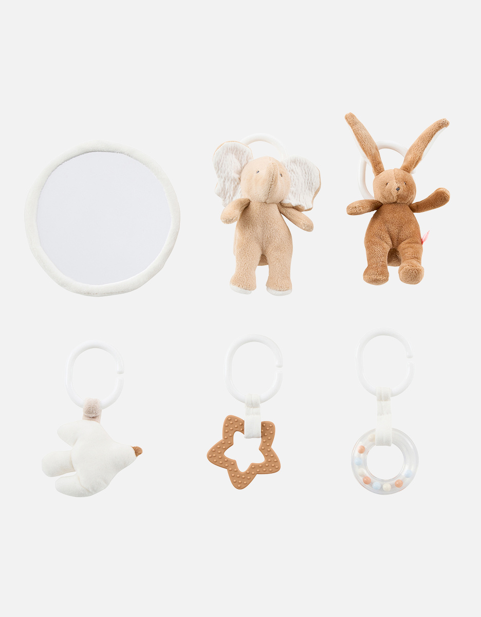 Le tapis d’éveil Noukies Snow est doté d’un bord rembourré qui permet à votre bébé de jouer en toute sécurité. Dès les premiers mois, bébé pourra jouer sur son dos grâce aux nombreuses activités accrochées sur les arches. Lorsque que bébé est capable de se retourner, les arches pourront être détachées et les activités pourront être placées sur le tapis. Couché sur le ventre, bébé est encouragé à lever la tête, stimulé par les différents jouets à sa portée. On aime les personnages tout doux et les touches de couleurs chaudes. Les activités détachables peuvent être changées de place.