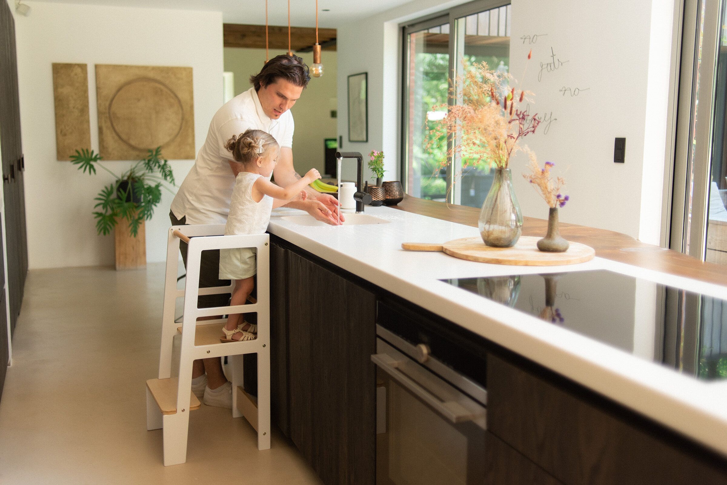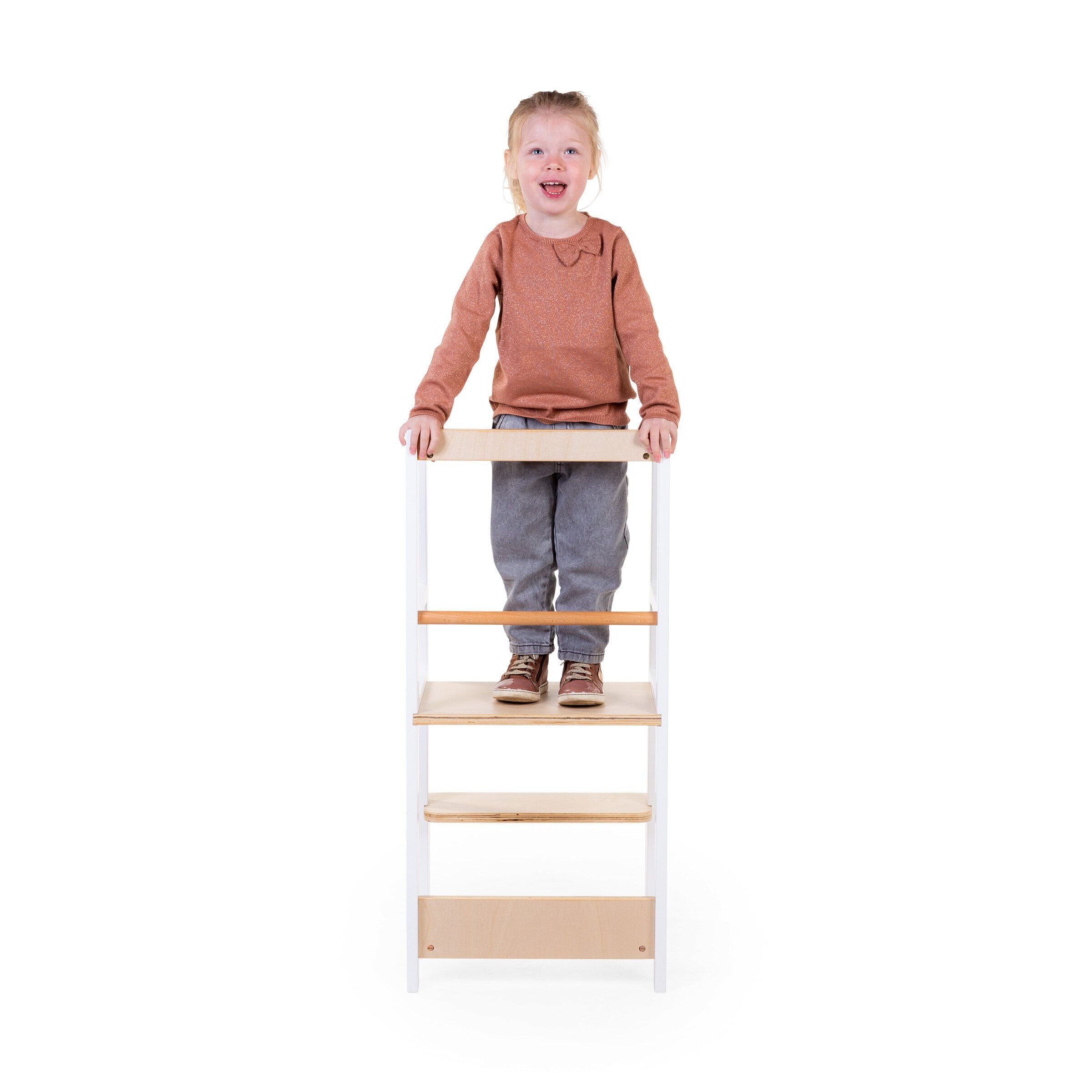 La Tour d’apprentissage Childhome blanc naturel permet aux petits enfants de découvrir le monde à hauteur d’adulte.