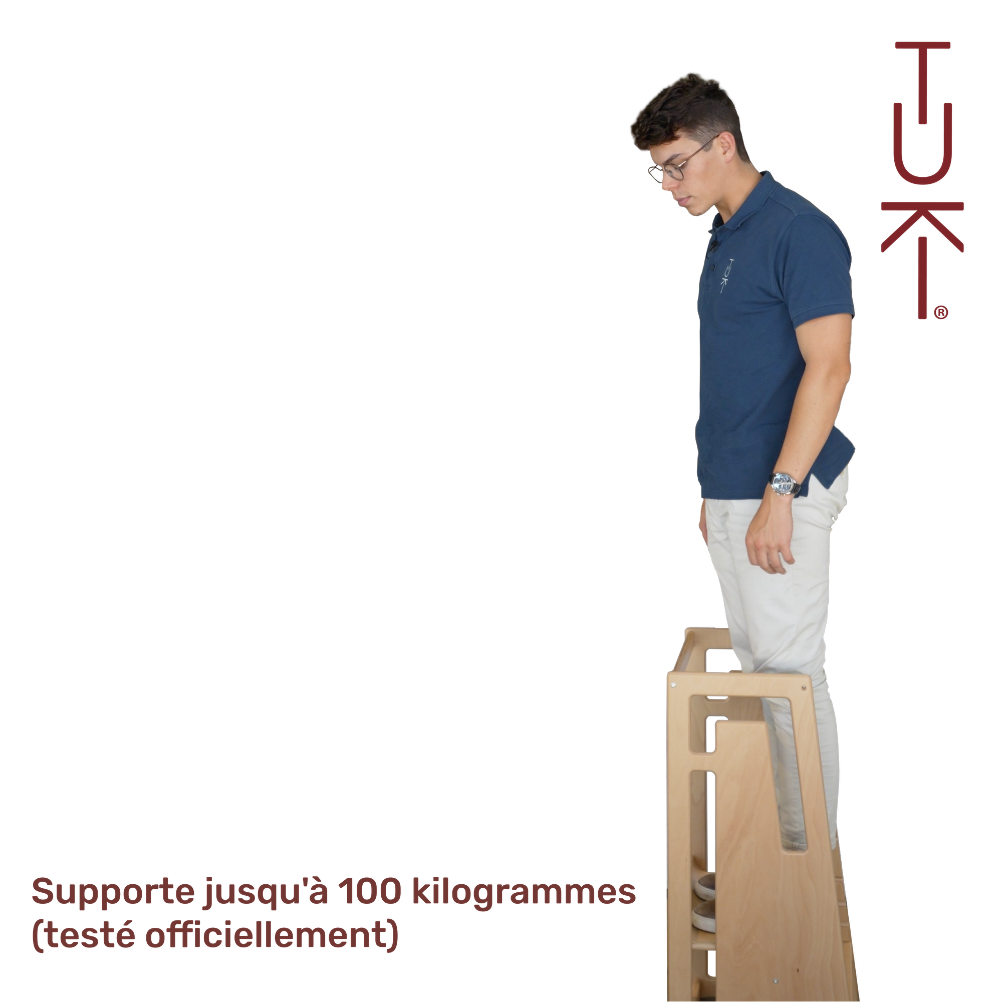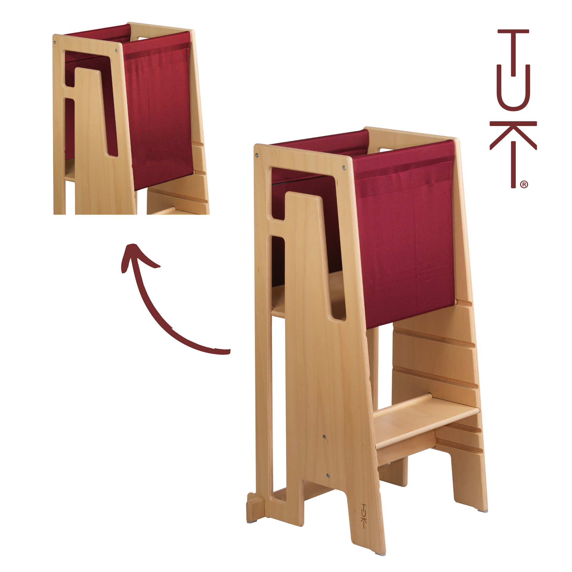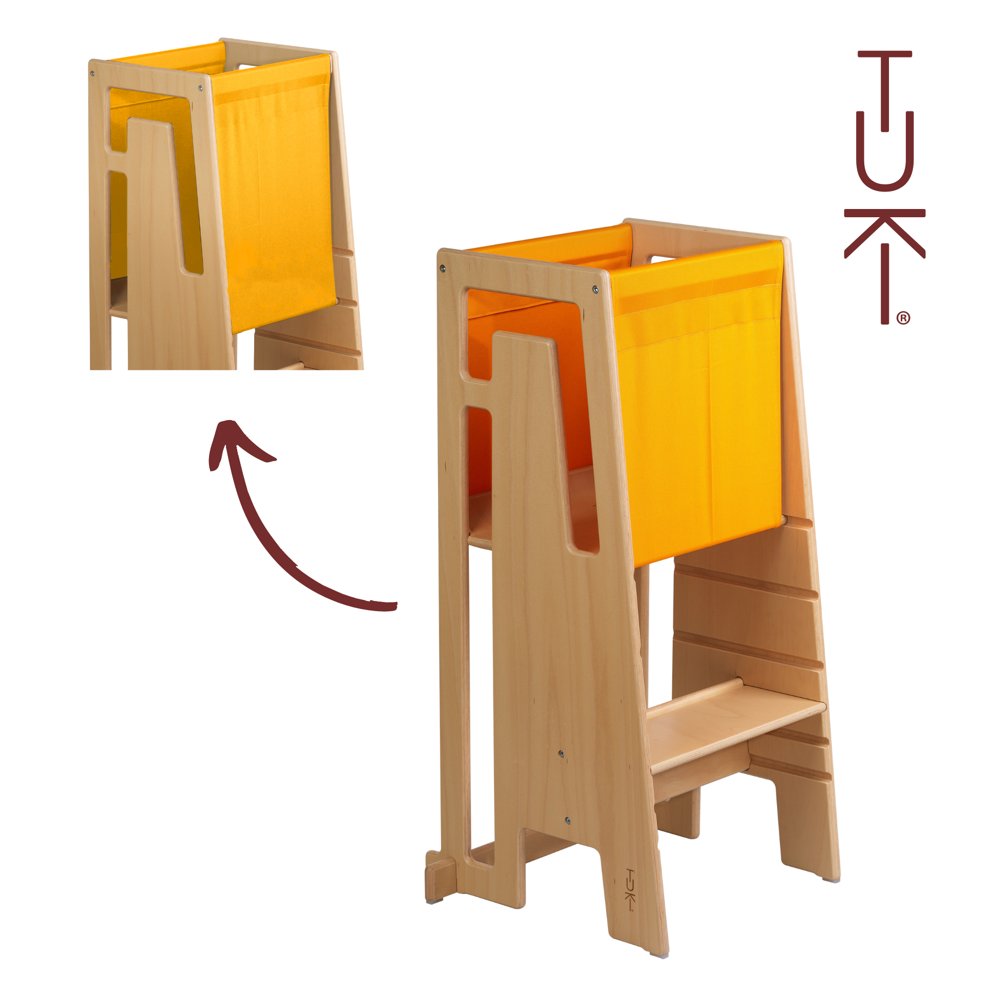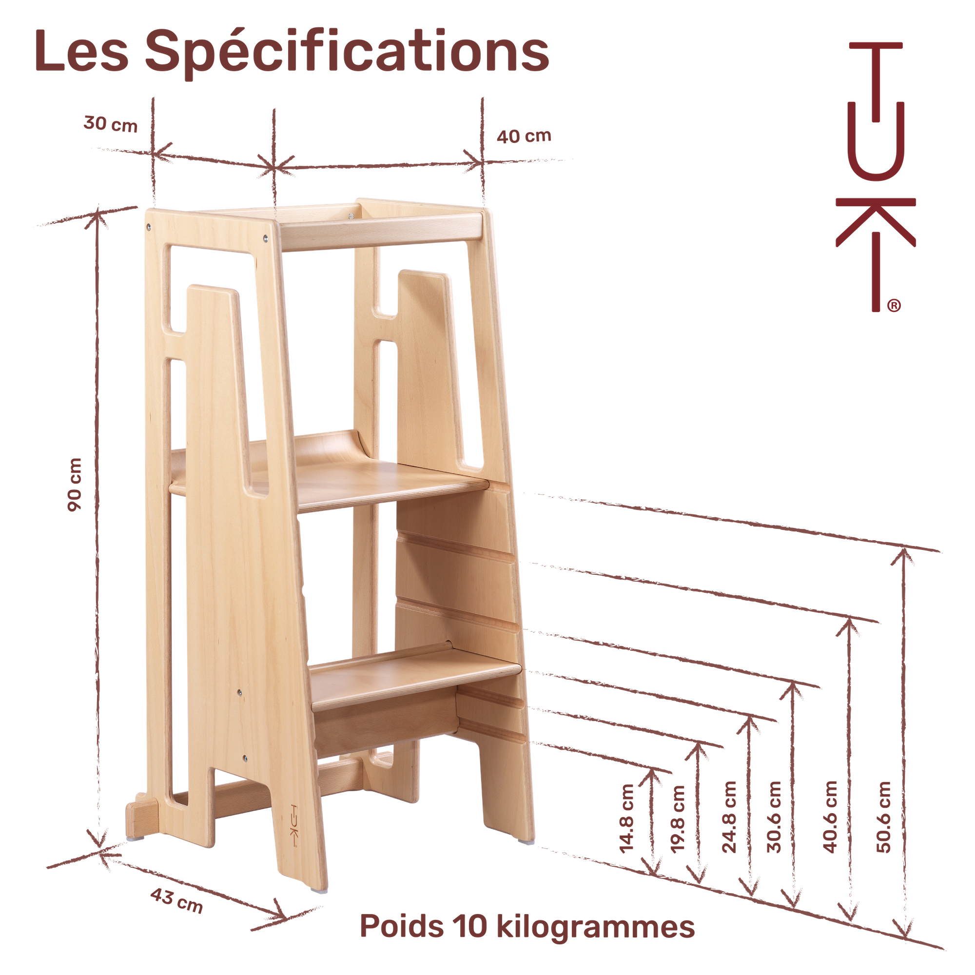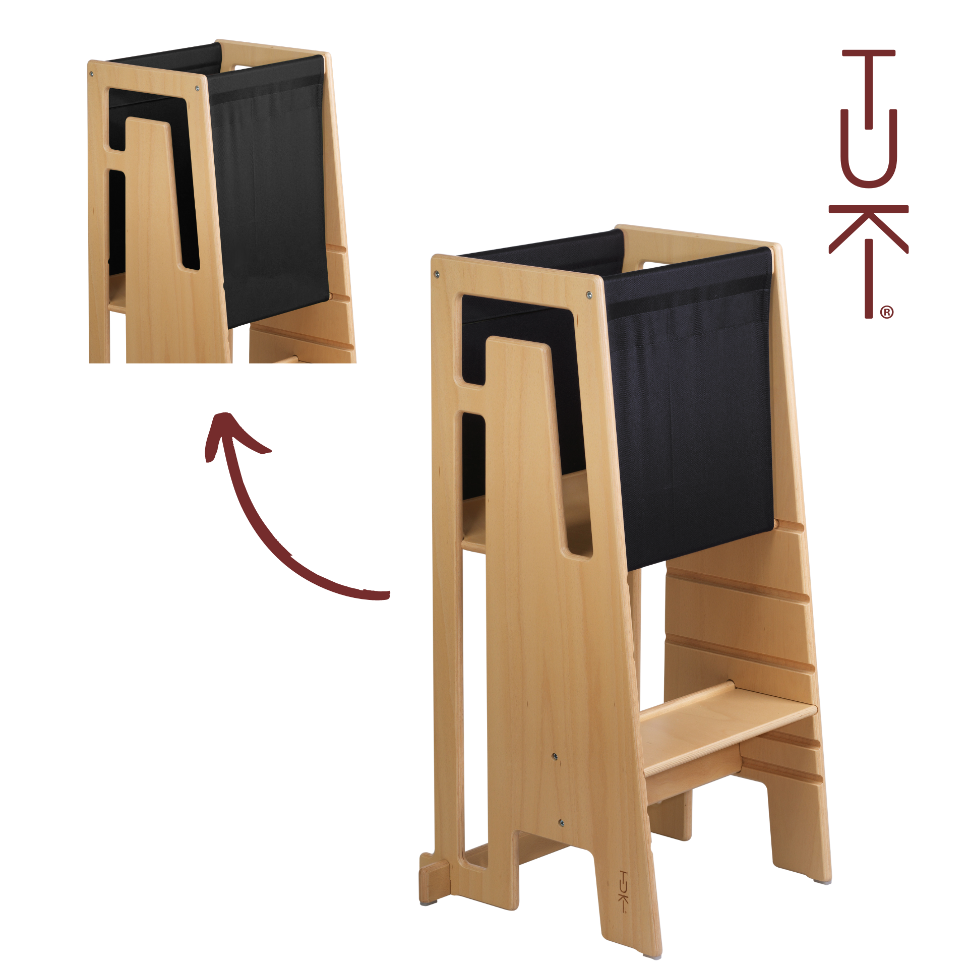 La Tour d’apprentissage Tuki nature permet aux petits enfants de remuer la poêle avec leurs parents dans la cuisine, de découper des biscuits à la table de la cuisine, de bricoler dans l’atelier ou de se laver les mains dans la salle de bain. Les enfants veulent découvrir le monde par eux-mêmes. Mais les plateaux de table, les plans de travail dans la cuisine ou la vue par la fenêtre restent longtemps inaccessibles pour eux. Notre Tuki élève les jeunes enfants au niveau de l’action dans chaque foyer et stimule l’imagination, la créativité et la passion.