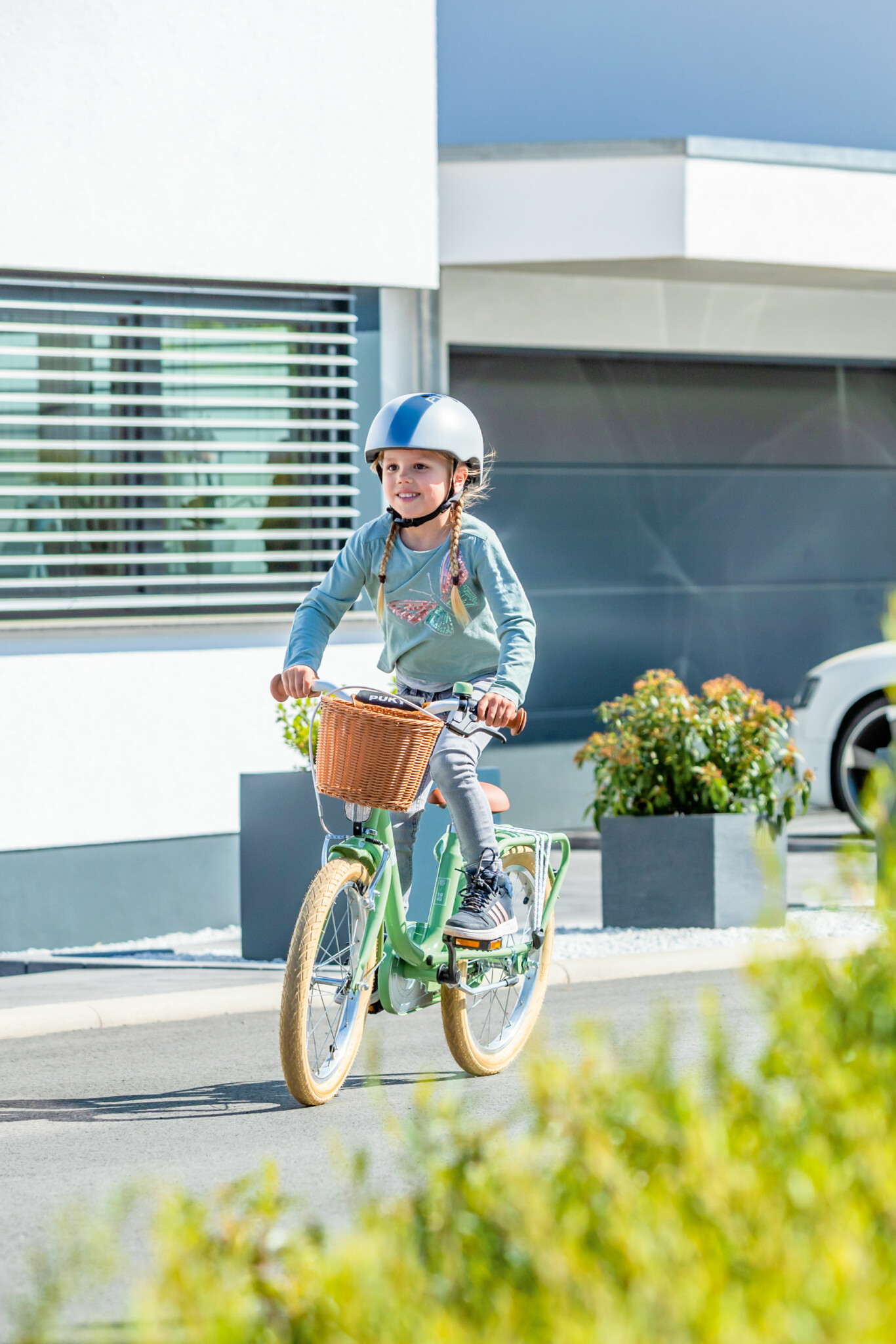Le plus petite vélo en acier de la gamme PUKY a été spécialement développée pour répondre aux besoins des plus jeunes. Avec ses roues de 12 pouces le vélo Puky Steel est adapté aux enfants à partir de 95 cm. Cela signifie qu’il n’y a pas d’arêtes vives sur l’ensemble du vélo, et que les zones dangereuses telles que le guidon et les poignées sont bien rembourrées. Le vélo est équipé des freins en porte-à-faux qui sont beaucoup plus faciles à doser afin de prévenir les chutes lors d’un freinage brusque. Le support intégré dans le cadre est particulièrement stable et permet ainsi une charge utile plus élevée. La boîte à chaîne complètement fermée empêche non seulement de salir les vêtements, mais empêche également les enfants d’entrer dans l’entraînement. Même la cloche est conçue de telle sorte que le corps sonore ne peut pas être dévissé et empêche ainsi que des arêtes vives ne soient découvertes. Le vélo est en plus équipé un panier en rotin. L’accès bas, qui facilite la montée et la descente sur le vélo, n’est pas seulement important pendant la phase d’apprentissage. Le cadre spécialement étudié pour les enfants garantit une assise sûre, confortable et saine, tandis que le set de sécurité PUKY de série les prémunit contre les risques de blessures. La finition époxy résistante et la qualité des composants garantissent elles aussi une longue durée de vie au vélo.